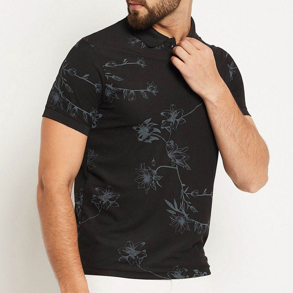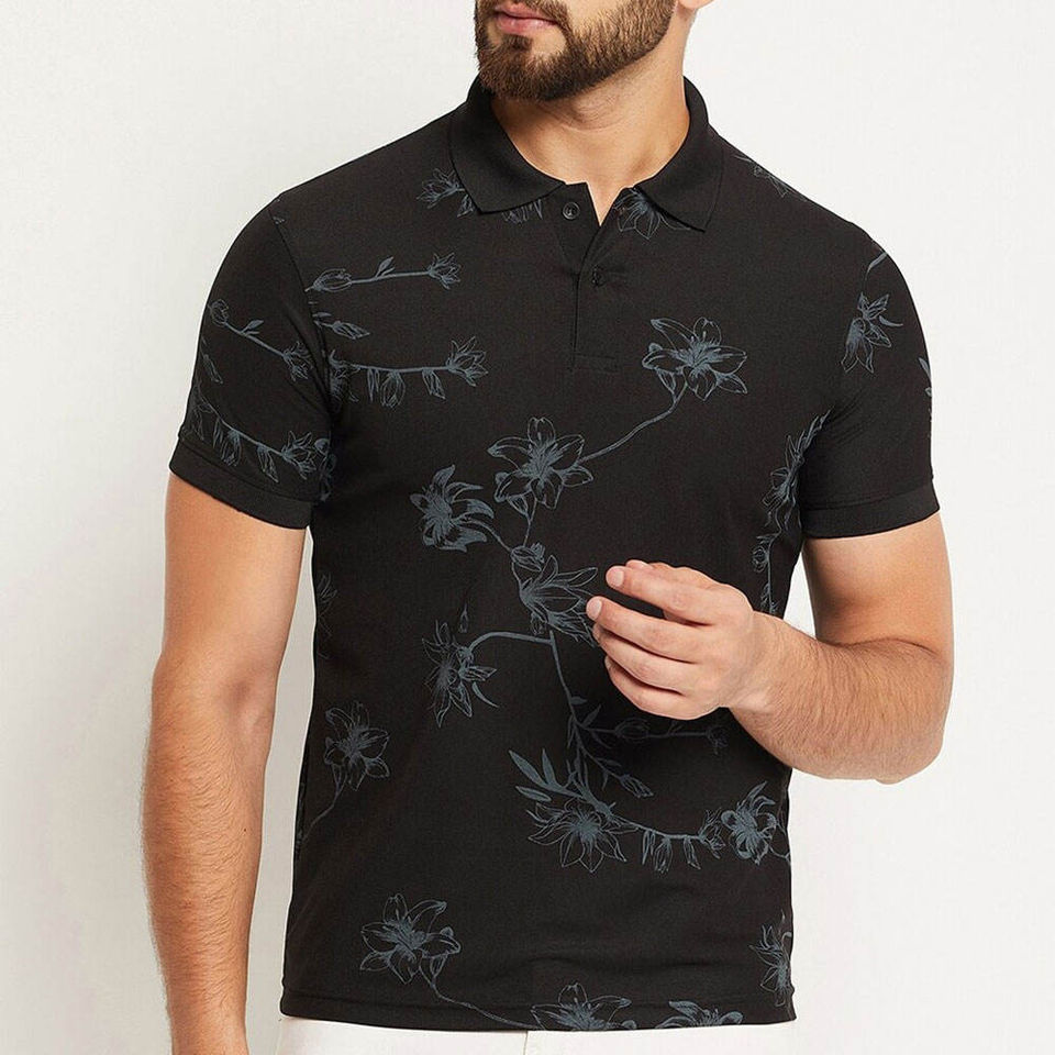 เสื้อโปโลผู้ชายสไตล์ธุรกิจใหม่ ผ้าฝ้ายผสมแคชเมียร์ แขนสั้น คอปกบาง ลายเรียบ ไซส์ XS ถึง XL