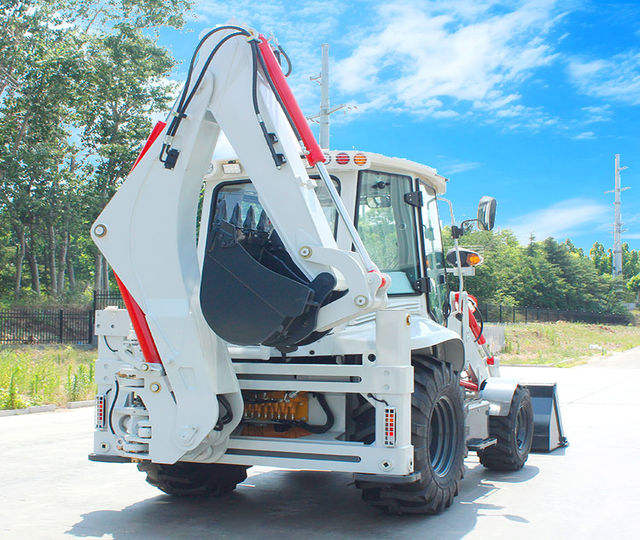 รถตักล้อยางแบบมีหลังขุด 4x4 รุ่นใหม่ ได้รับการรับรองมาตรฐาน CE พร้อมหัวตักและหัวขุดดิน รถแทรกเตอร์ขนาดกะทัดรัด เครื่องยนต์ดีเซล