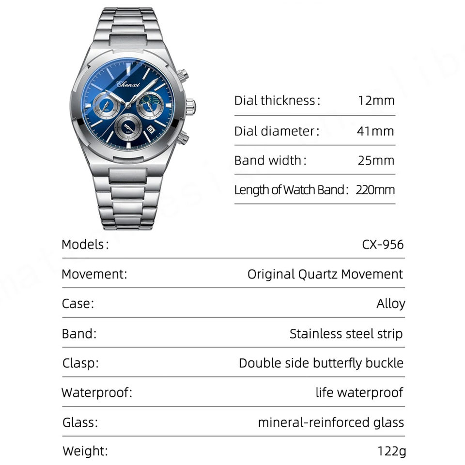 ลักษณะ:ออโต้วันที่, โครโนกราฟ, วัน / วัน, กันน้ำ, เรืองแสง, แสงกลับ
