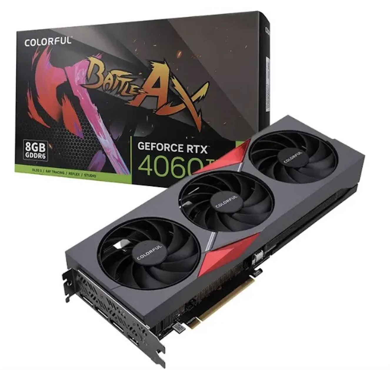 การ์ดจอ New COLORFUL BATTLE AX RTX 4060 Ti 8GB ยี่ห้อ RTX 4060ti 8gb รุ่น 4060ti GPU
