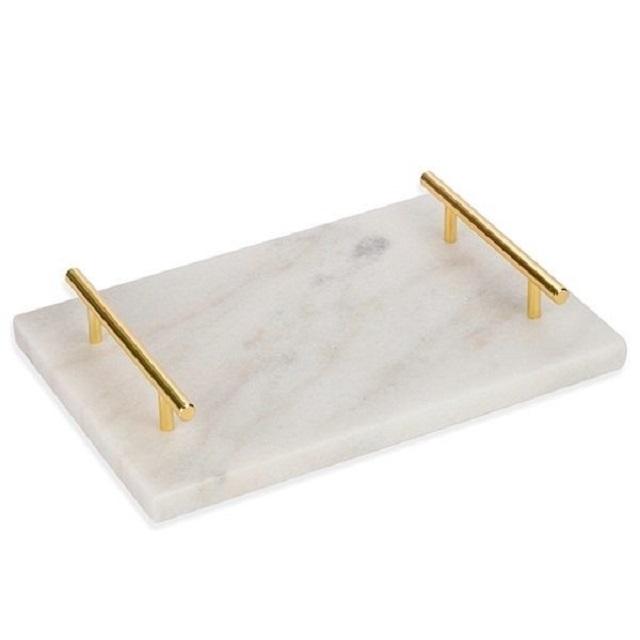 ใหม่ถาดเสิร์ฟเค้กผลไม้ของขวัญหินอ่อนถาดเสิร์ฟทรงสี่เหลี่ยมผืนผ้าตกแต่งด้วยหินอ่อนที่จับสีทอง
