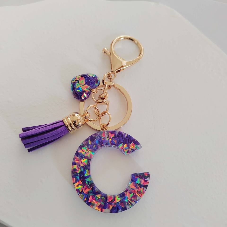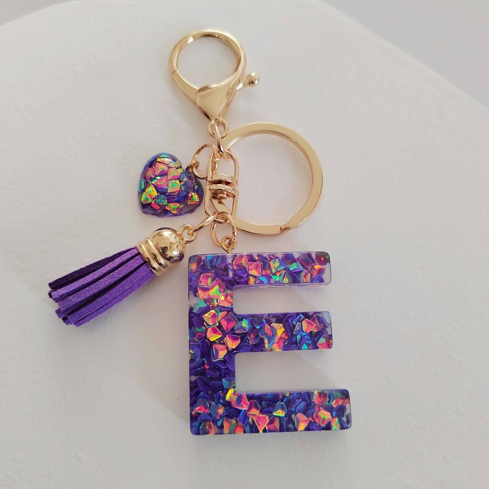 พวงกุญแจเรซิ่นสีลูกกวาดแบบใหม่ รูปทรงสี่เหลี่ยมผืนผ้า ชาร์จไฟได้ พร้อมพู่ห้อยแบบถัก 26 เส้น สไตล์อังกฤษ รูปหัวใจสีรุ้ง เรียบง่าย
