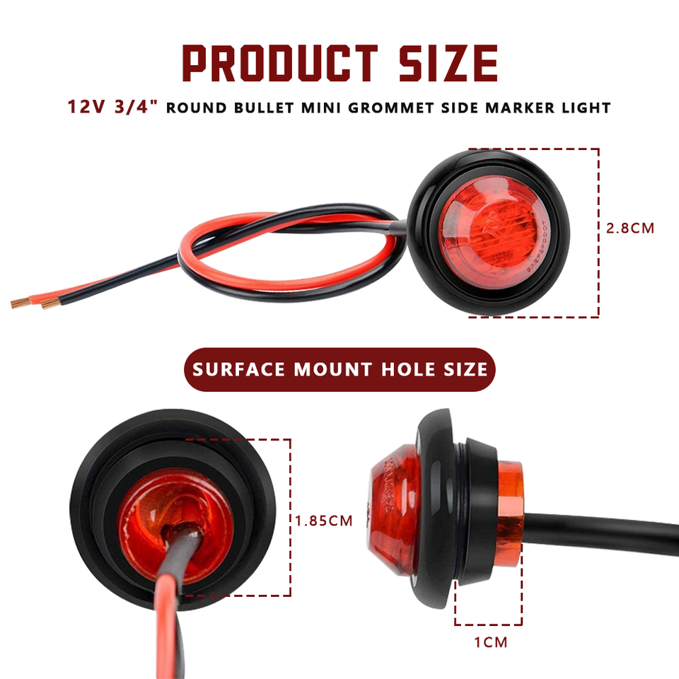 ไฟเตือนข้างรถยนต์ รถบรรทุก รถจักรยานยนต์ 12V IP65 กันน้ำ แสงส่อง 360 องศา ใช้ได้กับรถทั่วไป