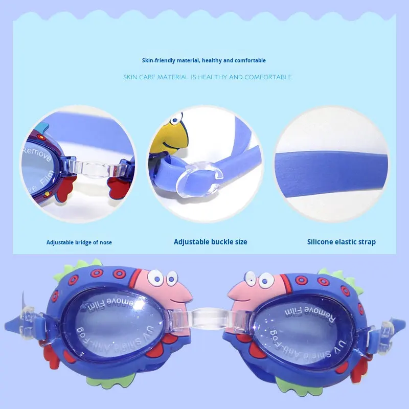 แว่นตาว่ายน้ำลายการ์ตูนสำหรับเด็ก, ใหม่แว่นตาว่ายน้ำลายปูกันน้ำกันหมอกความละเอียดสูงสำหรับเด็กผู้ชายและเด็กผู้หญิง