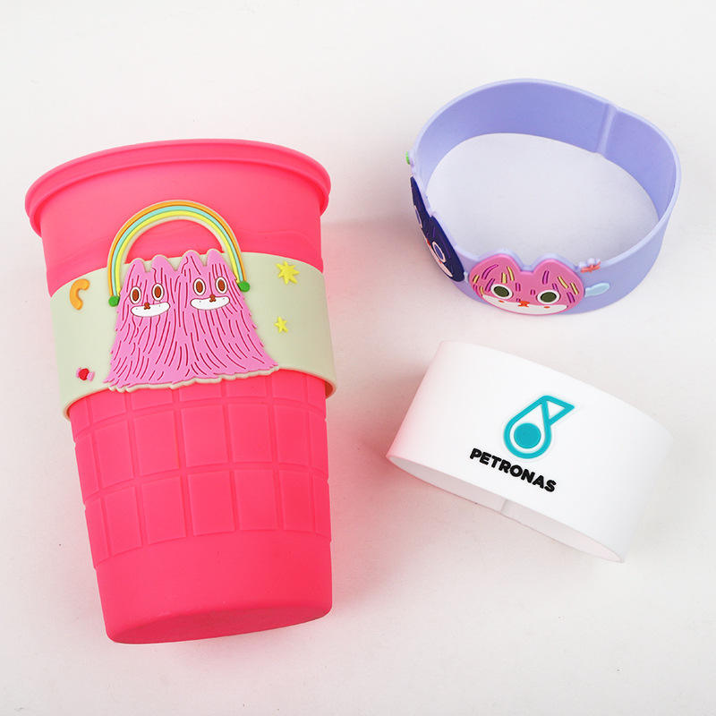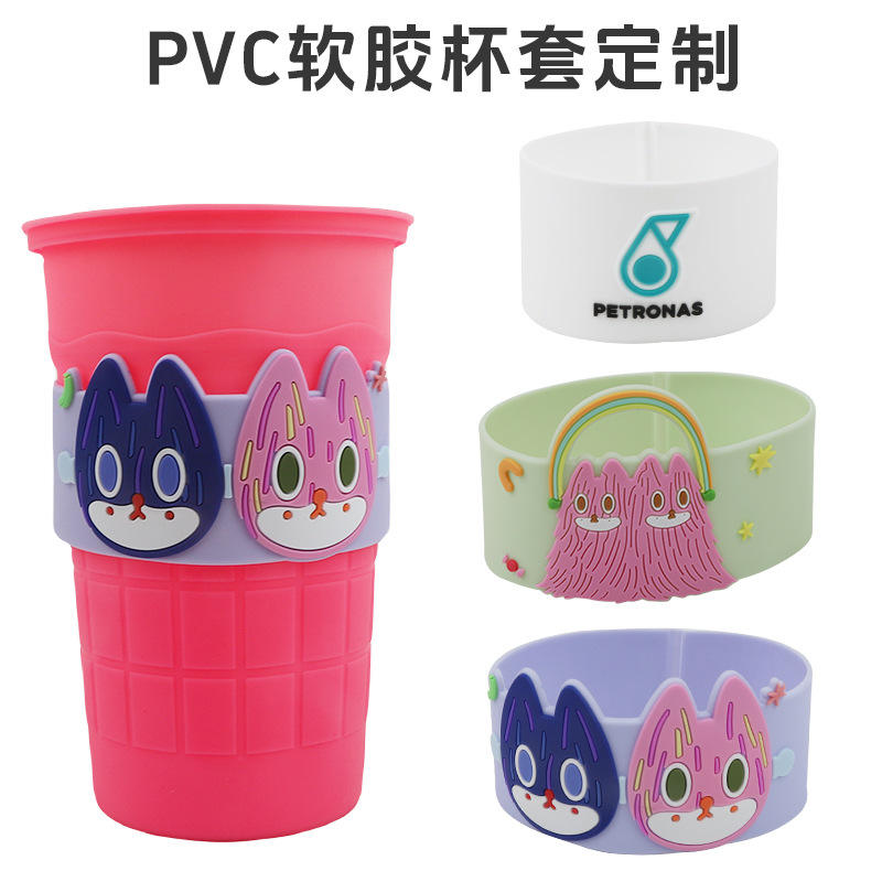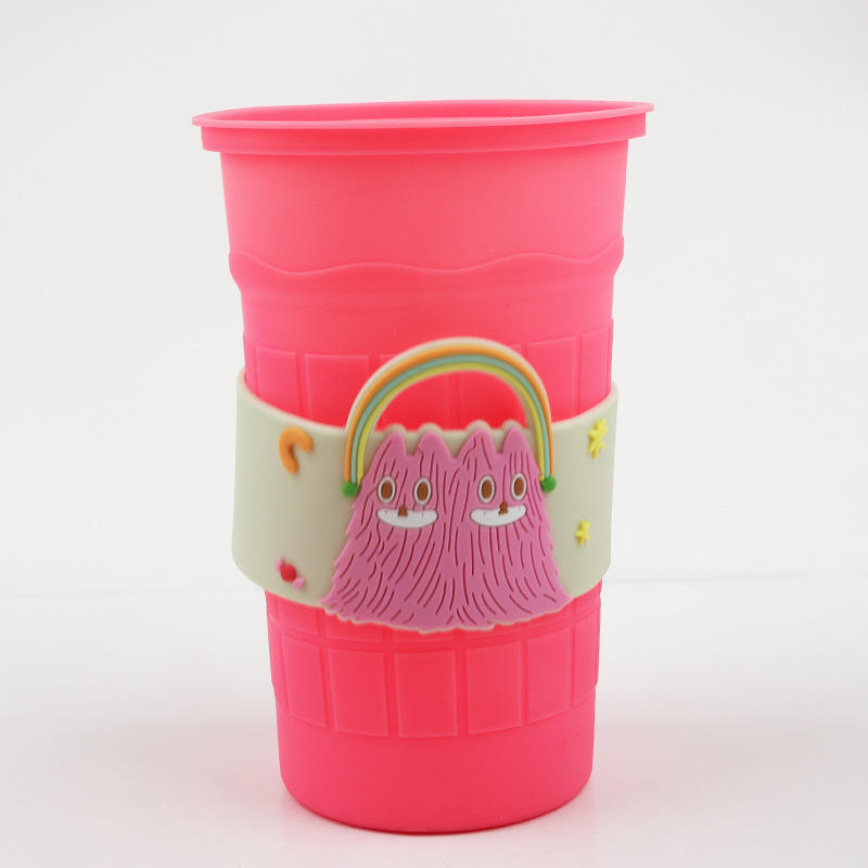 ถ้วยแก้วใส่ชานมน่ารักลายการ์ตูนใหม่ฝาครอบยางนิ่มป้องกันกันลวก