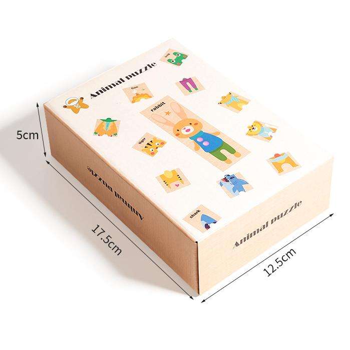 New Cartoon Educational Wooden Box Animal Shape Matching Puzzle Early English Word Recognition Board for Baby Children Boys Girl