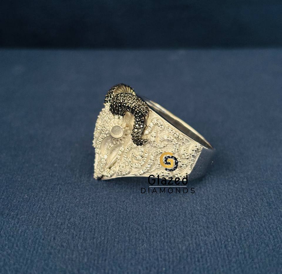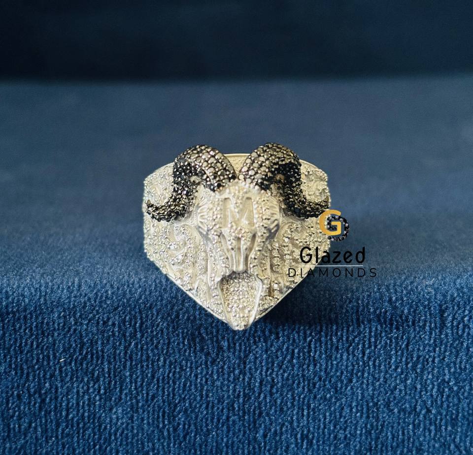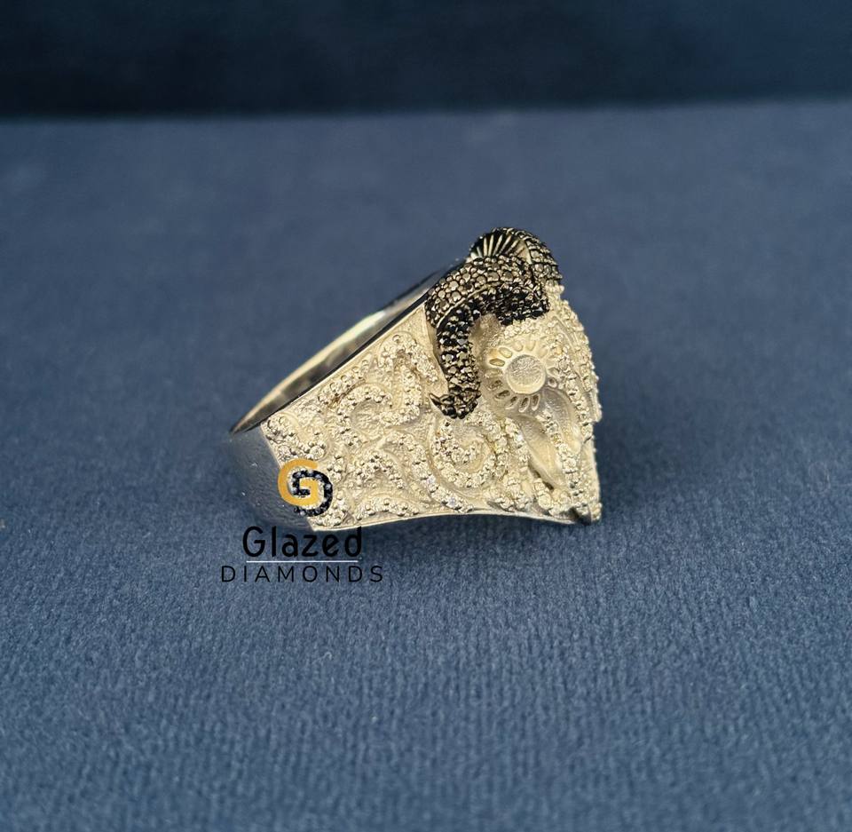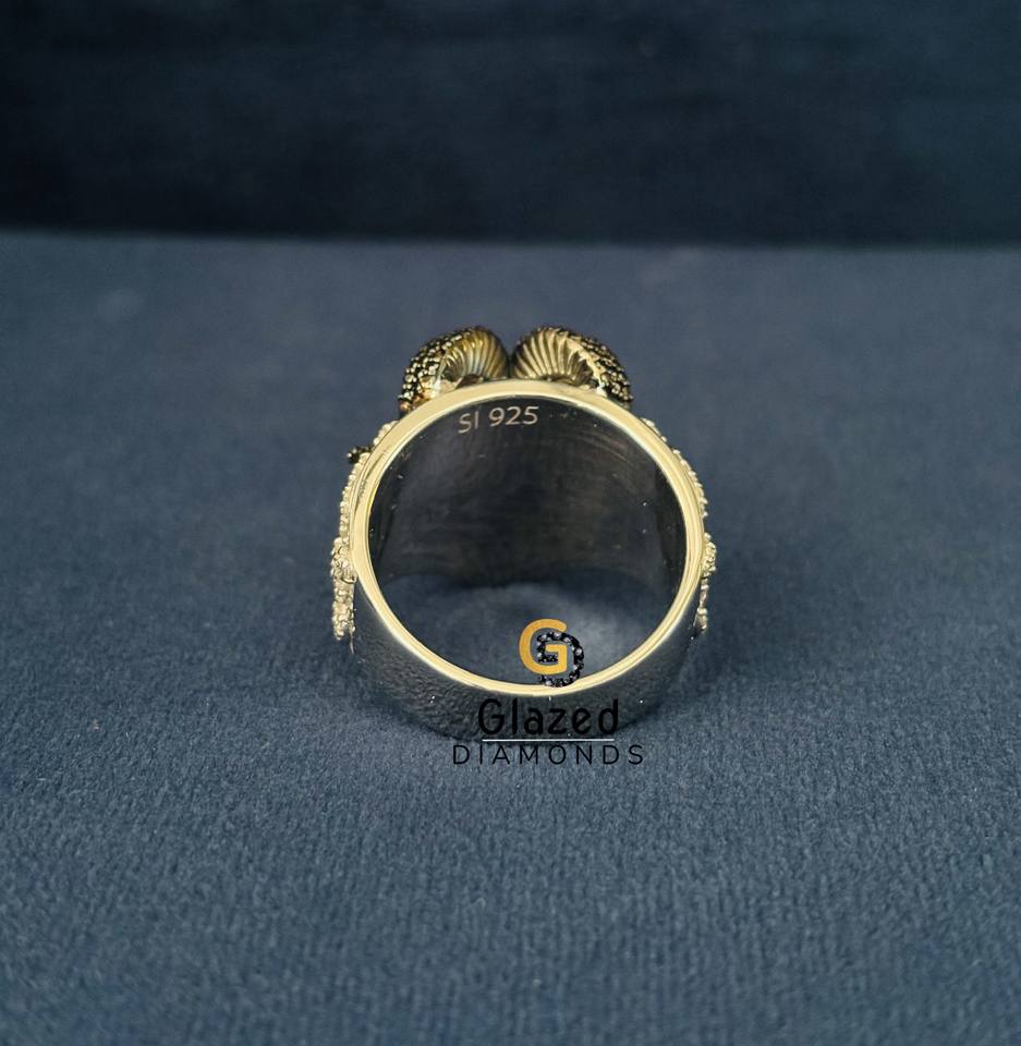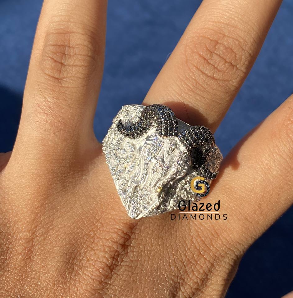 แหวนเงินแท้ 925 ประดับเพชรโมอิสซาไนต์ทรงกลมเจียระไนแบบบริลเลียนท์ ดีไซน์การ์ตูนฮิปฮอป รูปหัวแพะแกะ สำหรับผู้ชาย