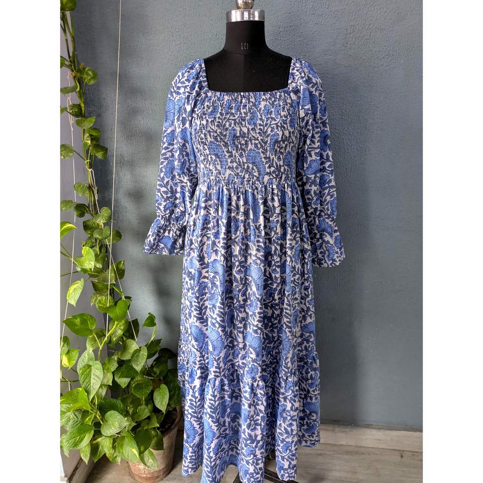 ชุดเดรสผ้าฝ้ายแท้สำหรับผู้หญิงชุดเดรสฤดูร้อนน้ำหนักเบาพิมพ์ลายดอกไม้ทำจากผ้าฝ้ายแท้ใหม่ลำลอง