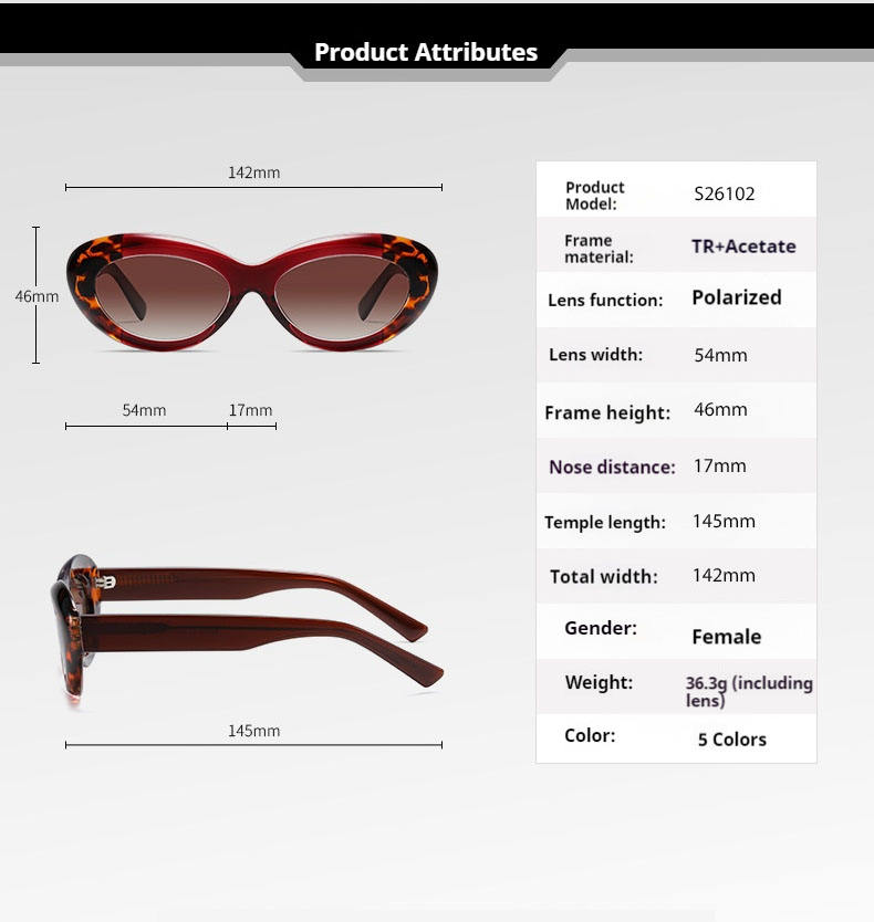 ใหม่แว่นตากันแสงสีฟ้าตาแมวแว่นตาป้องกันแสงแดดย้อนยุคแว่นตา26102 UV400 TR acetate พร้อมกรอบ