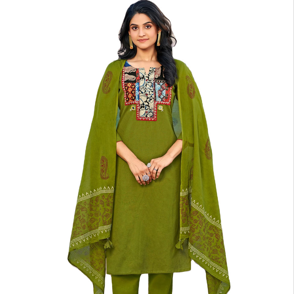 ผ้าฝ้ายแคตตาล็อกเกอร์ใหม่พิมพ์ด้วยมือทํางานพร้อมชุดดูปัตตากูร์ติสําหรับการขายออนไลน์