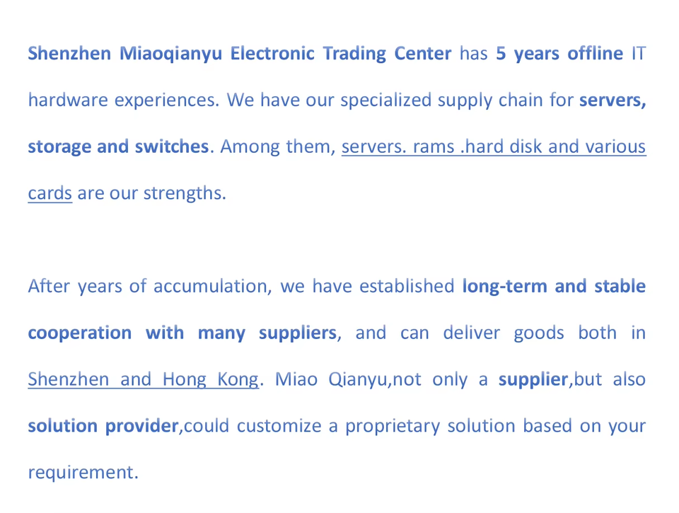 คำอธิบายผลิตภัณฑ์จากซัพพลายเออร์
