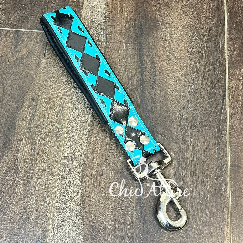 สายจูงสุนัขลายตารางหมากรุกหนังแท้