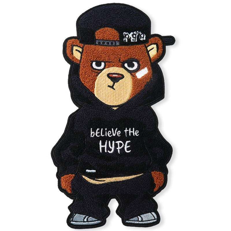 แพทช์ปักลายหมีเชนิลล์แบบใหม่ ปักโลโก้ตามสั่ง แพทช์เย็บติดเสื้อผ้าแบบ 3 มิติ สีและขนาดตามสั่ง