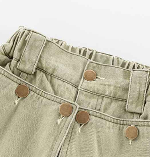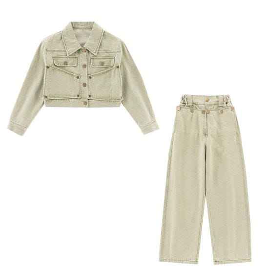 สูทผ้ายีนส์คู่สำหรับเด็กผู้หญิงผ้าคอตตอน100% เก๋ไก๋ระบายอากาศได้ดีพร้อมกระดุมตกแต่งสำหรับฤดูหนาวฤดูใบไม้ร่วงฤดูร้อนฤดูใบไม้ผลิ