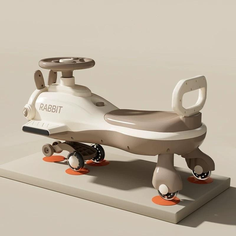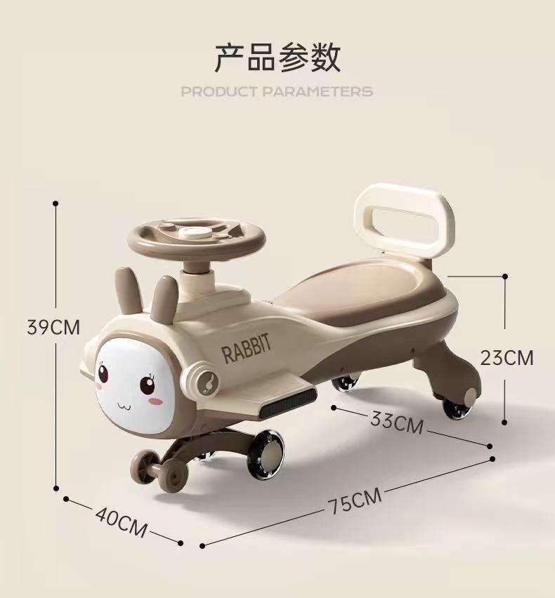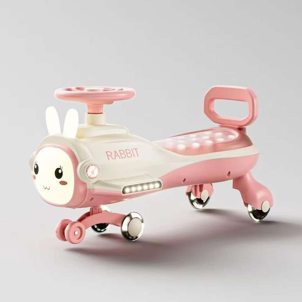 รถของเล่นขี่ได้ทุกเพศสำหรับเด็กรุ่นใหม่พร้อมเอฟเฟคไฟสไตล์กระต่ายหมุนได้คันเหยียบและอุปกรณ์ควบคุม-พลาสติก4-6ปี