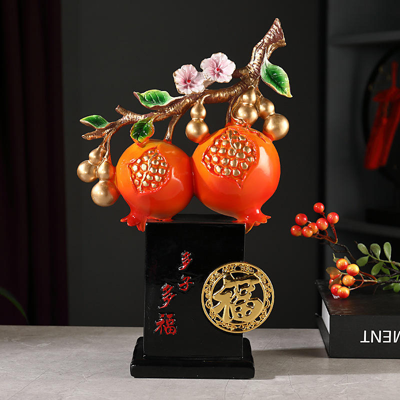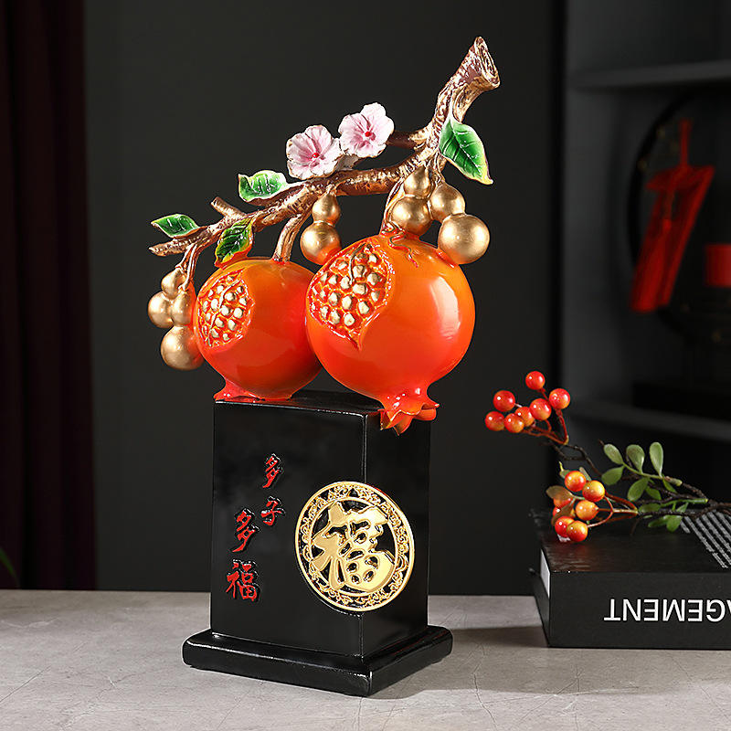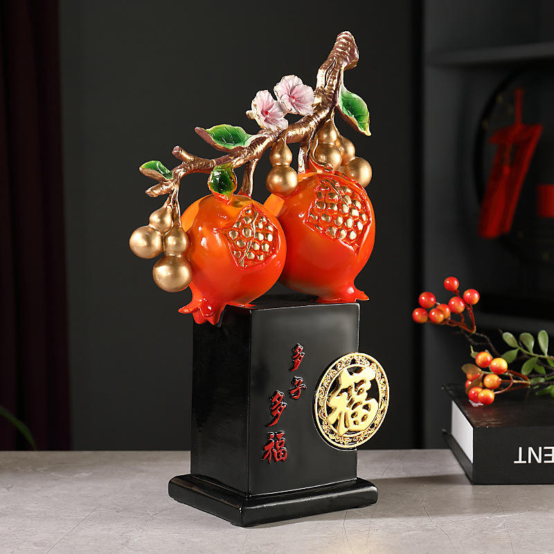 งานประติมากรรมเรซิ่นอีพ็อกซี่รูปทับทิมจีนแบบใหม่ ดูโอจื่อ ดูโอฟู สำหรับตกแต่งตู้ไวน์ ระเบียงบ้าน ของขวัญแต่งงาน ของขวัญขึ้นบ้านใหม่