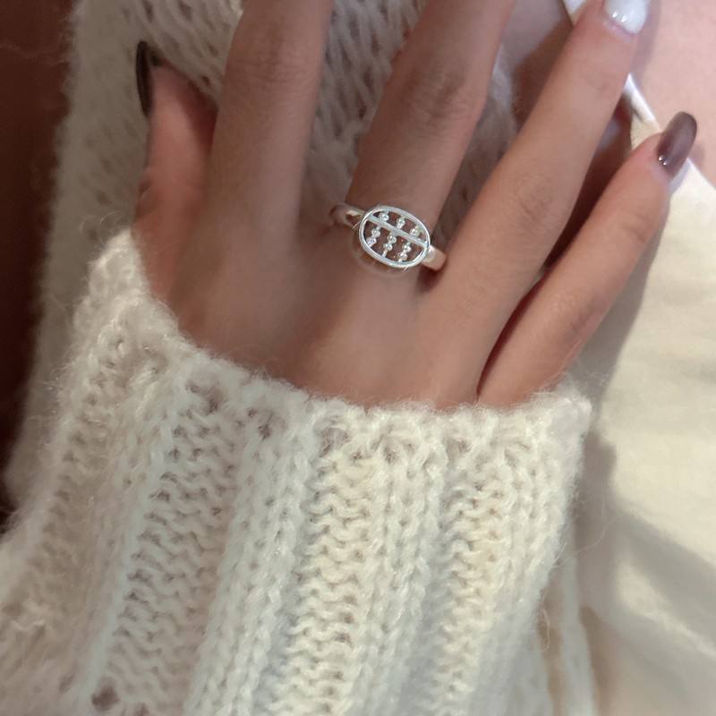 แหวนลูกคิดเงินแท้ย้อนยุคสไตล์เกาหลีแบบเรียบง่ายใหม่แหวนแฟชั่น S925จีนขายส่ง