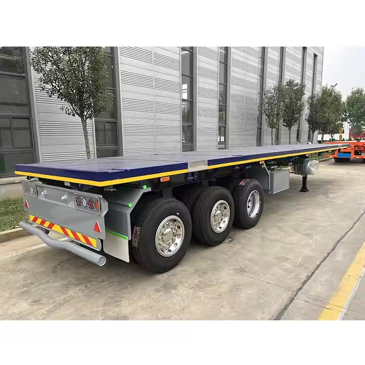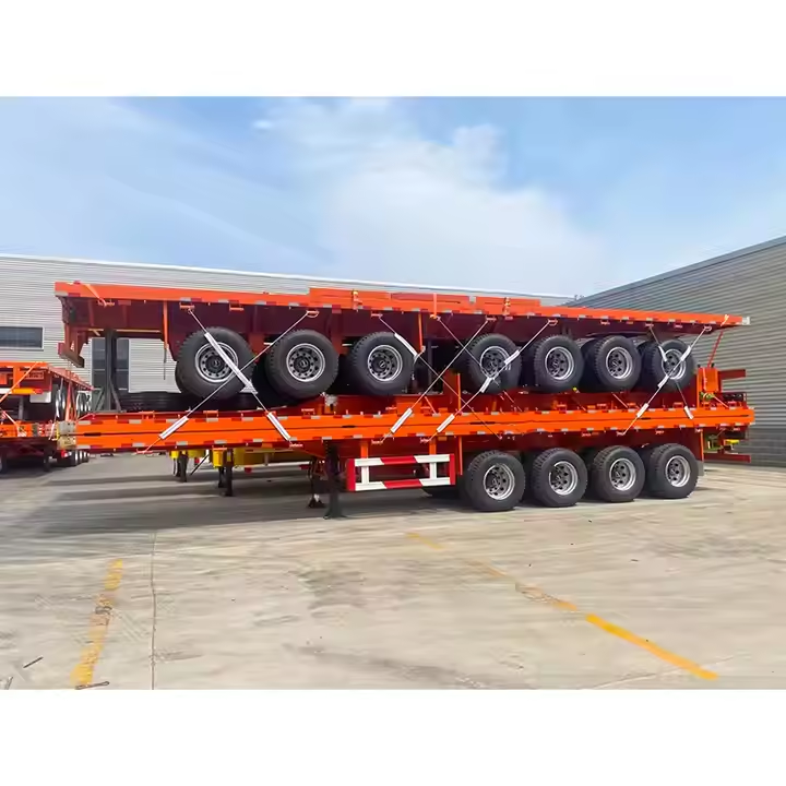รถพ่วงกึ่งพ่วงแบบจีนใหม่ รถพ่วงพื้นเรียบ รถพ่วงบรรทุกสินค้าแบบโครงเหล็ก