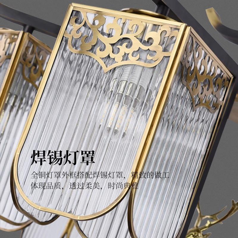 โคมไฟระย้าทองแดงสไตล์จีนใหม่ ดีไซน์หรูหรา สร้างสรรค์ พร้อมไฟ LED ปรับระดับความสูงได้ ถนอมสายตา เหมาะสำหรับห้องนั่งเล่น