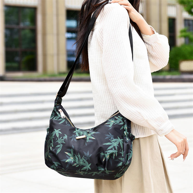 กระเป๋าสะพายข้างสไตล์จีนแบบใหม่ รูปทรงเกี๊ยว ผ้าอ๊อกซ์ฟอร์ดสีดำ กันน้ำ ปิดด้วยซิป สำหรับใช้ในชีวิตประจำวัน ฤดูใบไม้ร่วง 2025