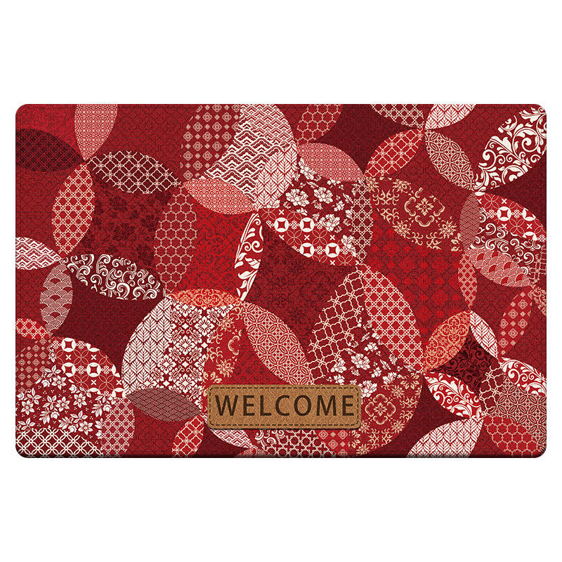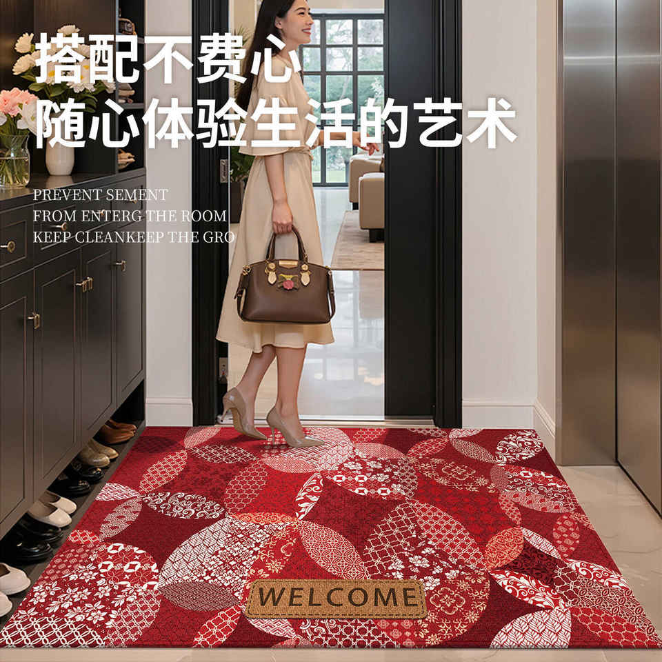 พรมเช็ดเท้าสไตล์จีนแบบใหม่ ลายดอกไม้สีแดงเข้ม รูปทรงสี่เหลี่ยมผืนผ้า กันลื่น พรมต้อนรับหน้าประตูบ้าน ทำจากเส้นใยโพลีเอสเตอร์