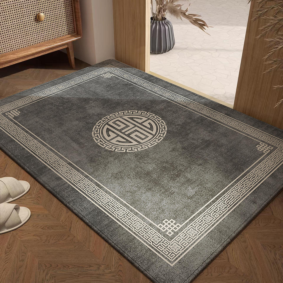 พรมเช็ดเท้าสไตล์จีนแบบใหม่ รูปทรงสี่เหลี่ยมผืนผ้า ทำจากเส้นใยโพลีเอสเตอร์ กันลื่น ป้องกันคราบสกปรก สำหรับทางเข้าบ้าน สีพื้น ทำความสะอาดง่าย