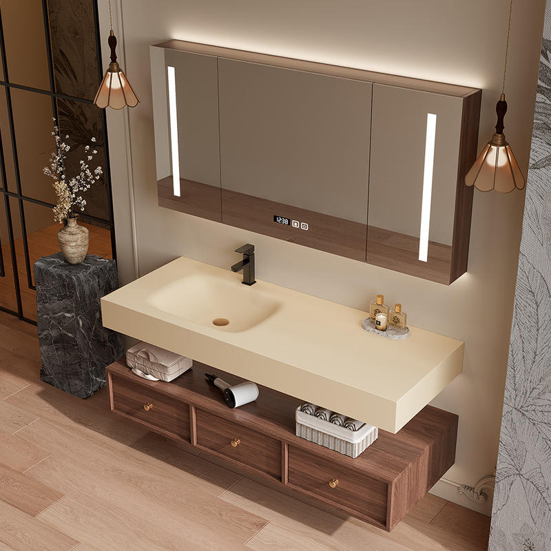 ตู้ห้องน้ำแบบโมเดิร์นพร้อมอ่างล้างหน้าหินแบบไร้รอยต่อเคลือบแลคเกอร์บนแผ่นเมลามีน ปรับแต่งได้ตามต้องการ