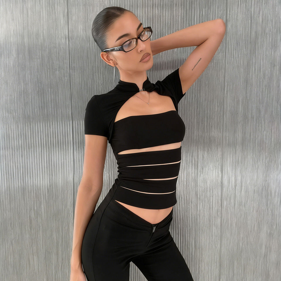 เสื้อครอปแขนสั้นทรงเข้ารูป คอวีแบบจีน ดีไซน์เซ็กซี่ ทันสมัย แบบใหม่ ดีไซน์เก๋ไก๋ ใส่ได้หลายโอกาส