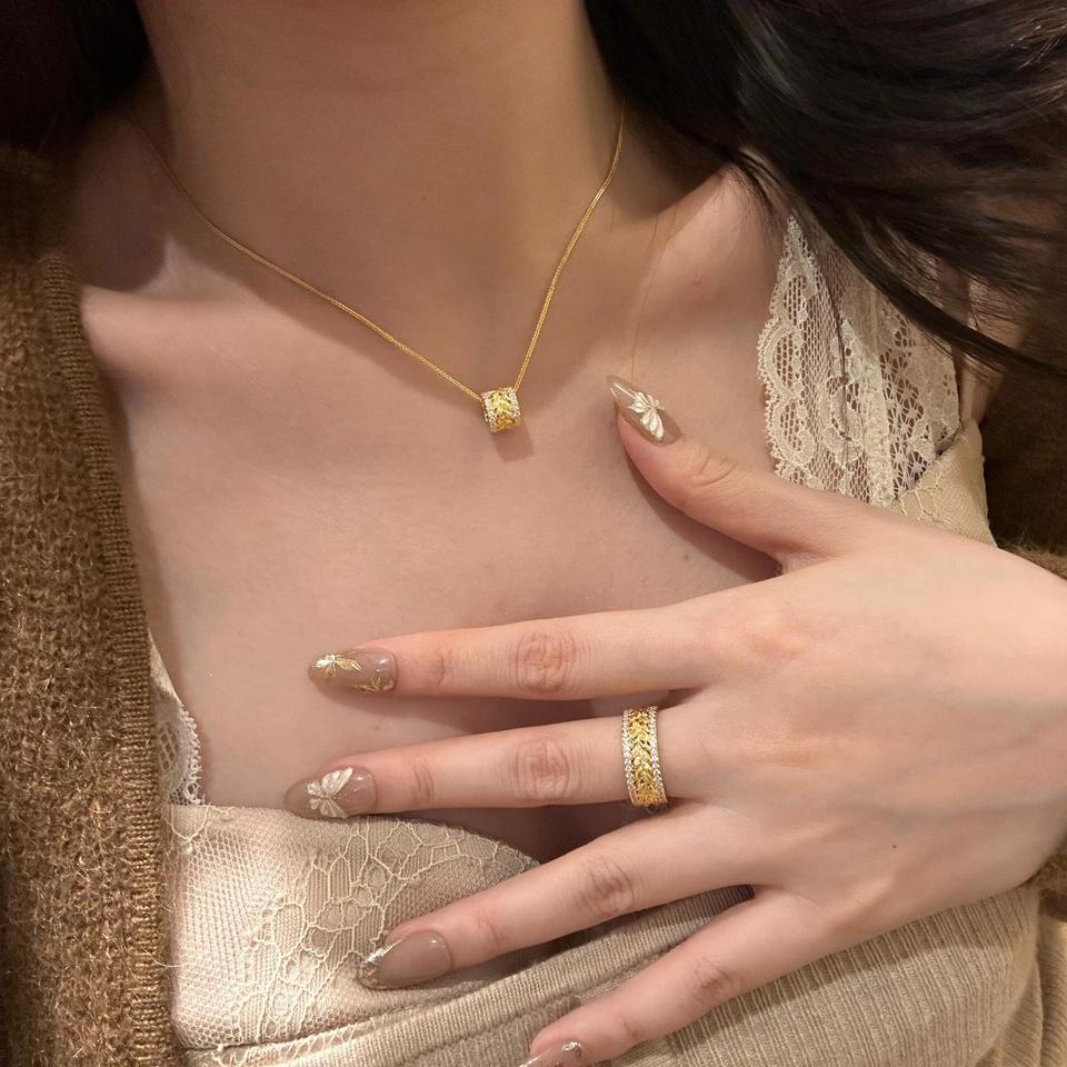 จี้เงินแท้ S925 สไตล์จีนใหม่ รูปน้ำเต้าหยก ประดับกิ่งทอง ใบหยก สร้อยคอจี้สวยงาม
