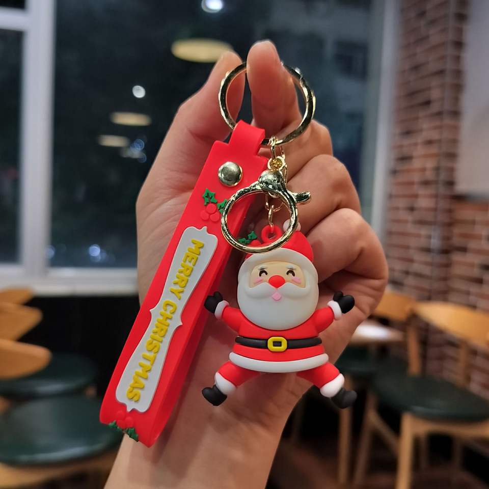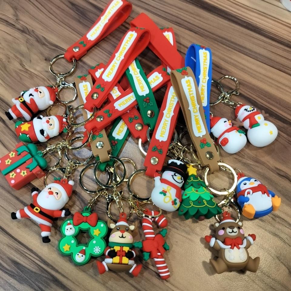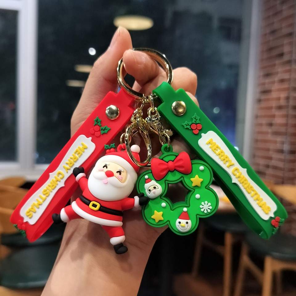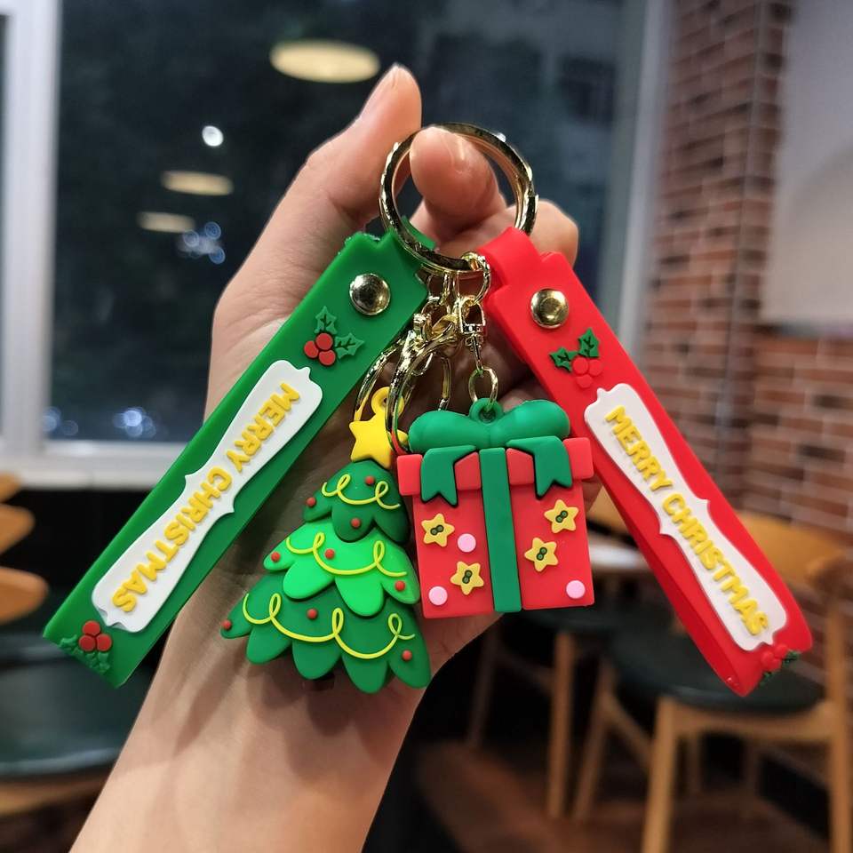 พวงกุญแจรูปต้นคริสต์มาสแบบใหม่พวงกุญแจรูปการ์ตูนคาราบิเนอร์น่ารักทำจากพลาสติกของขวัญขนาดเล็ก