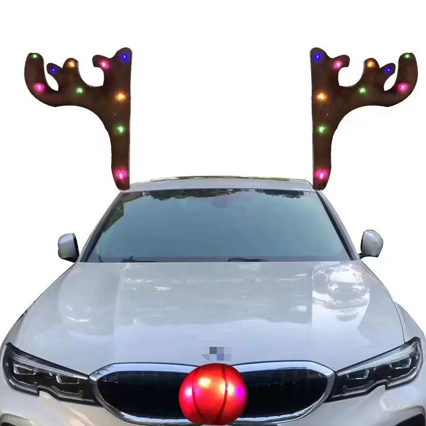 ของตกแต่งรถยนต์รูปเขากวางเรนเดียร์เรืองแสง LED สำหรับคริสต์มาสแบบใหม่