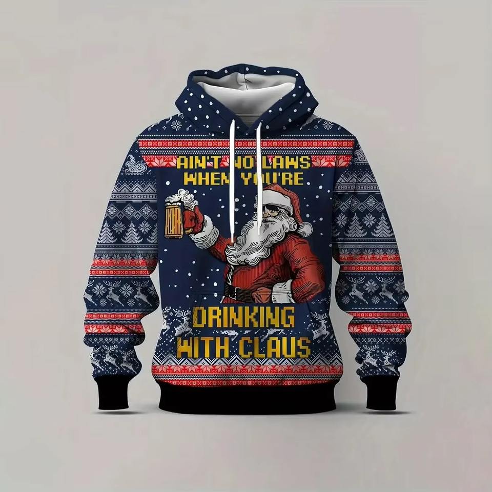 เสื้อมีฮู้ดสวมหัวสำหรับผู้ชายสำหรับเทศกาลคริสต์มาส100% ใส่สบายผ้าโพลีเอสเตอร์ออกแบบโลโก้ได้ตามต้องการ