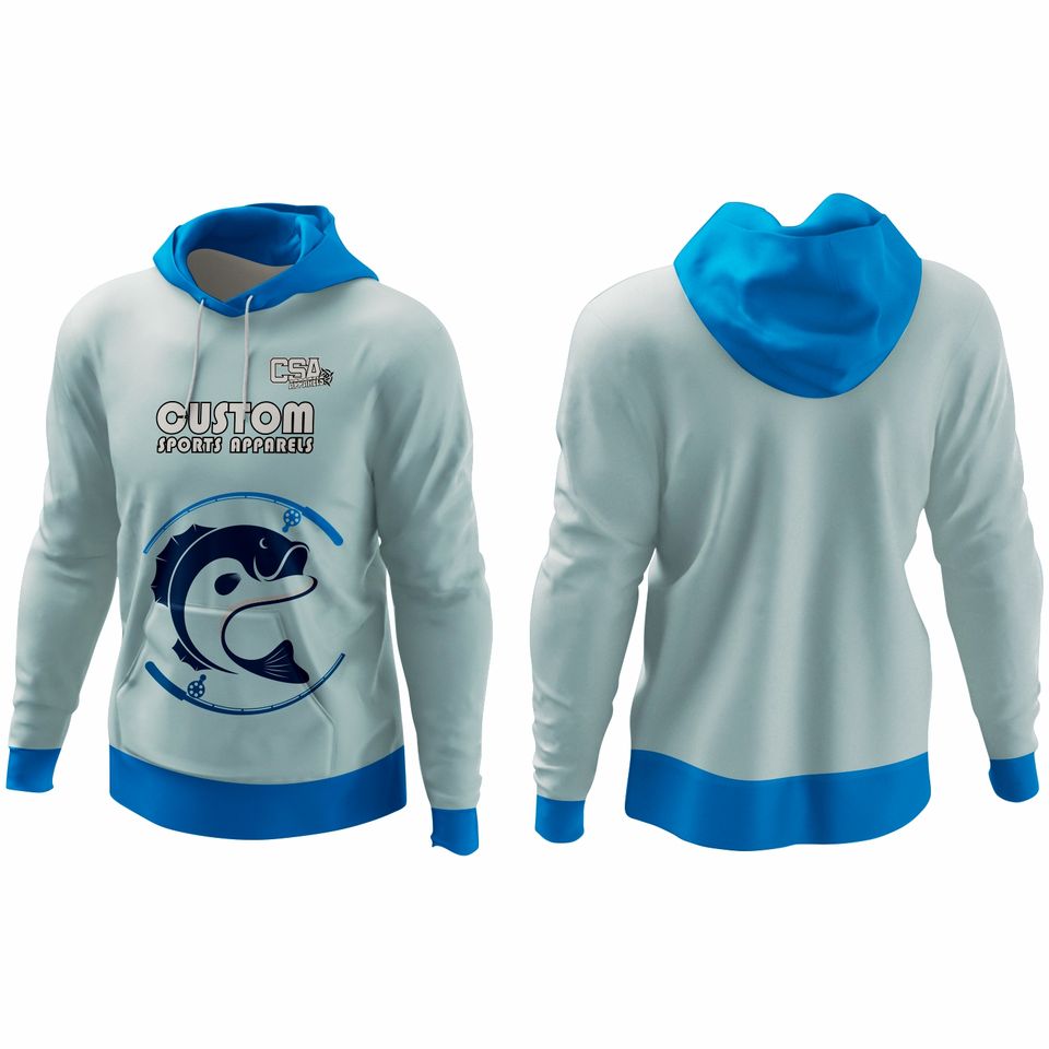 เสื้อฮู้ดดี้ตกปลาพิมพ์ลายดิจิทัลแขนยาวสำหรับผู้ชาย ดีไซน์คลาสสิคใหม่ พิมพ์ลายพัฟฟ์ ตกแต่งลายปลา สามารถปรับแต่งได้