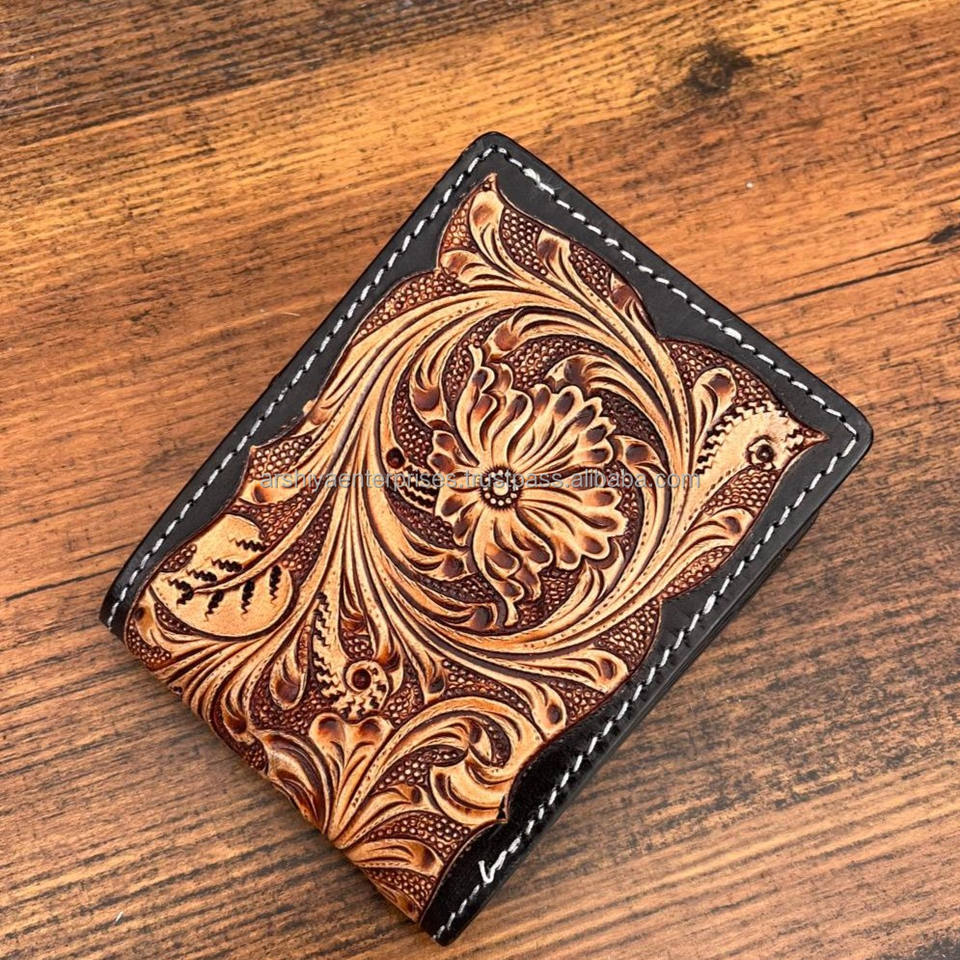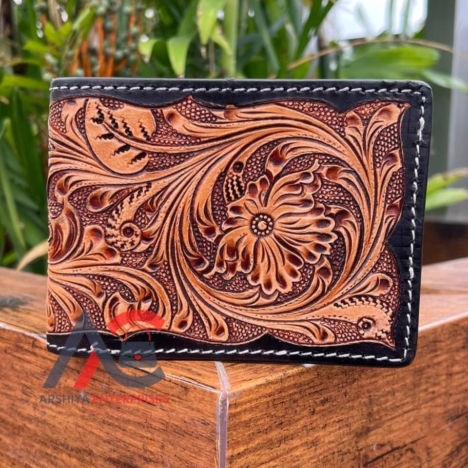 Hand Tooled Genuine Leather Men's Bifold Wallet
