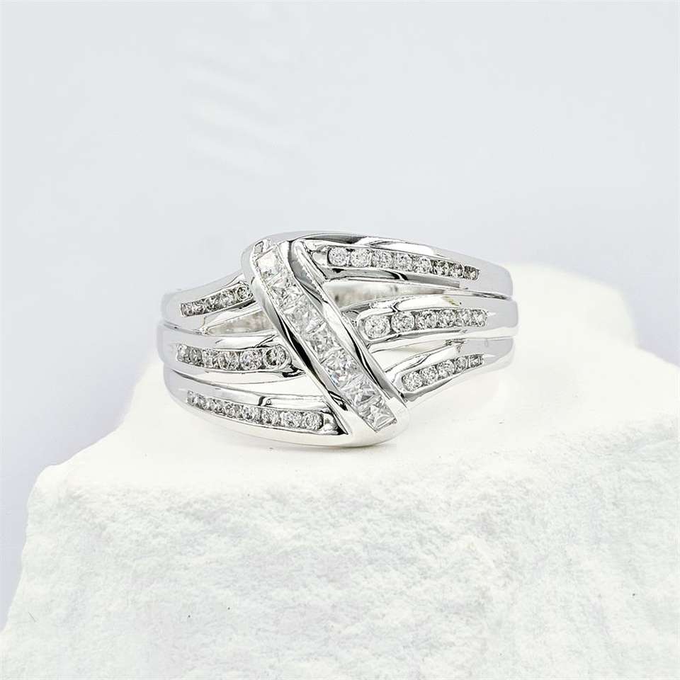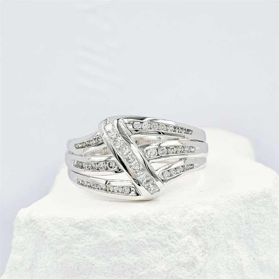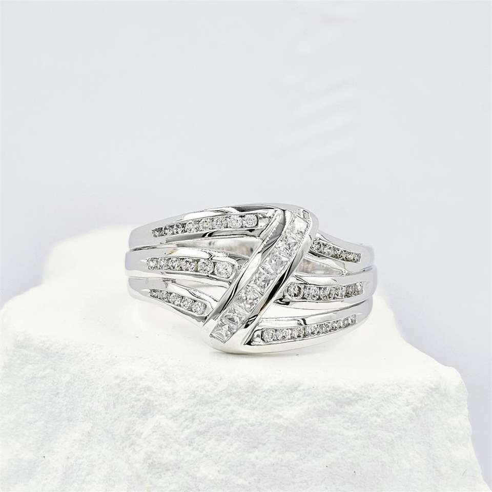 New Classic Women's 925 Sterling Silver Rhodium Plated Cocktail Ring with Lab Created Zircon