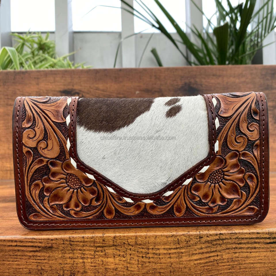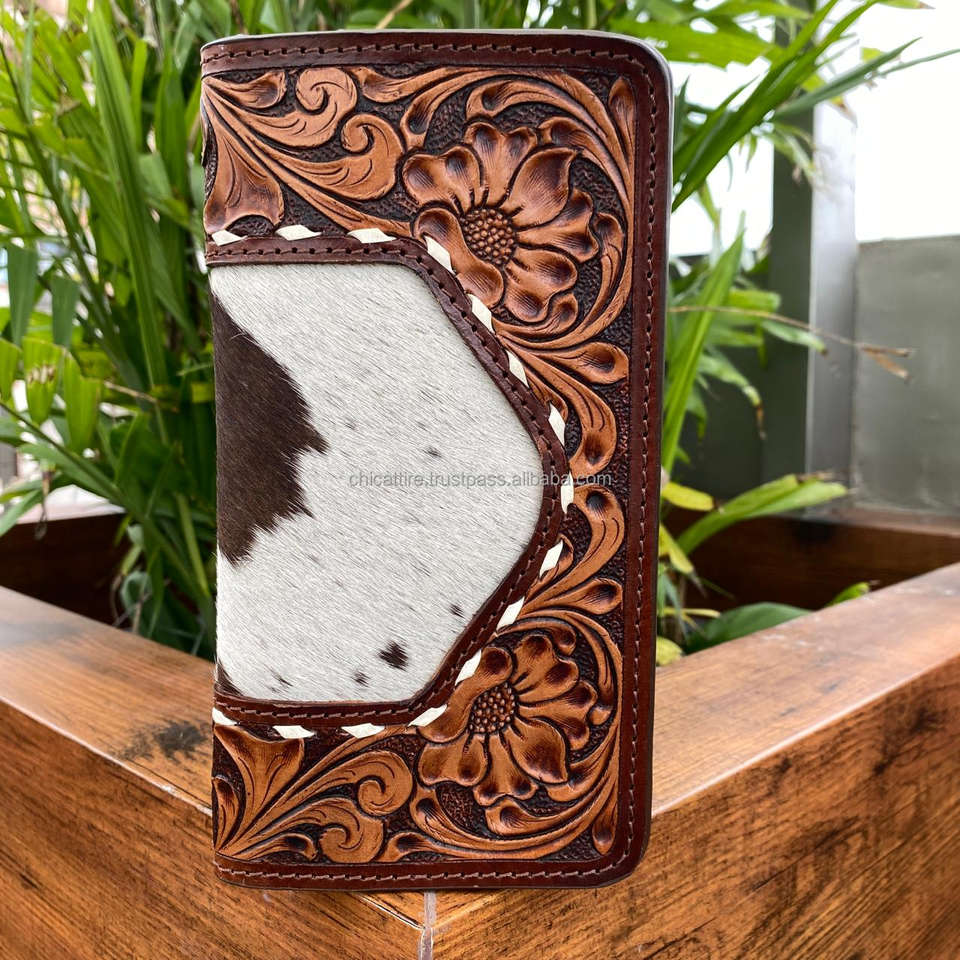 กระเป๋าสตางค์หนังวัวยาวสองพับสำหรับผู้ชายทำมือ
