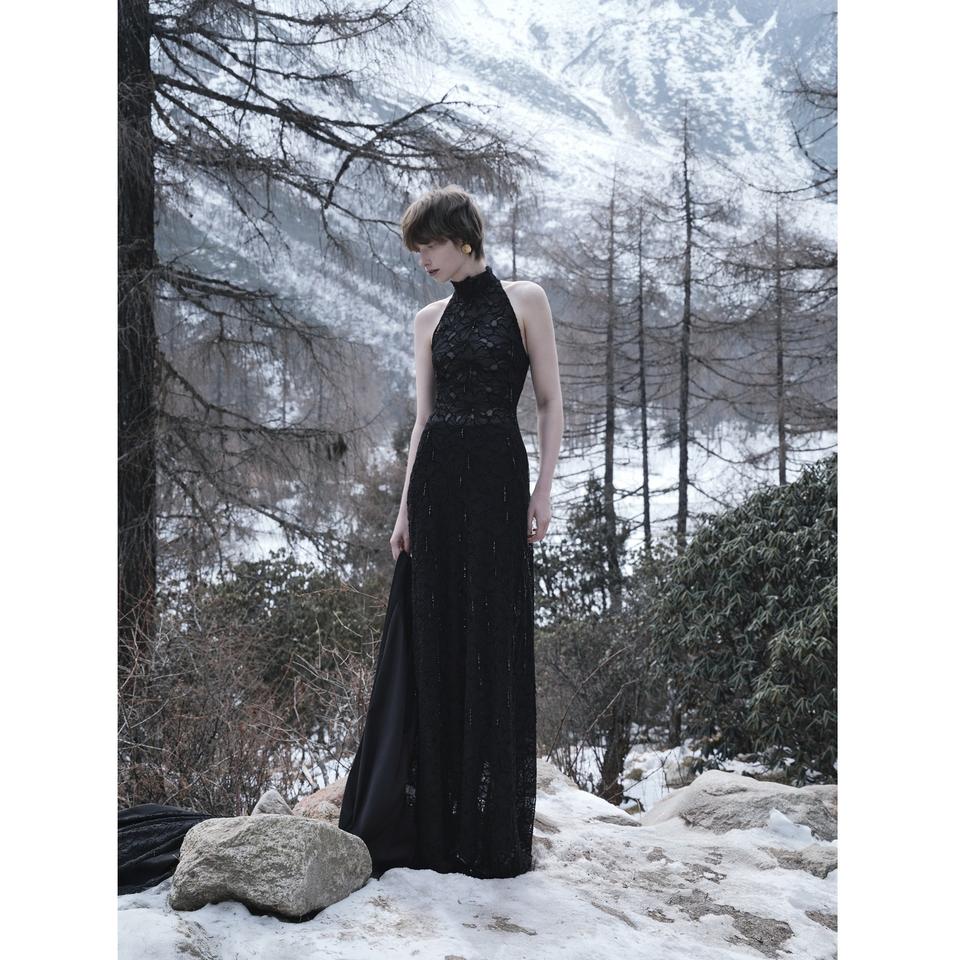 ชุดเดรสใหม่สำหรับผู้หญิง สไตล์ลำลอง LILIAN แบบผูกคอ ยาวคลุมเท้า ผลิตจากโพลีเอสเตอร์ 92% เรยอน 8% แบบไม่มีแขน
