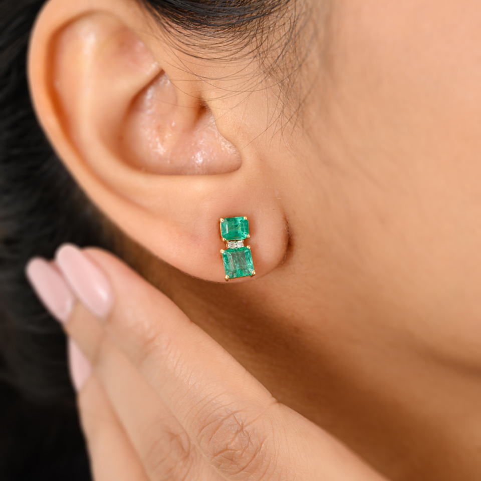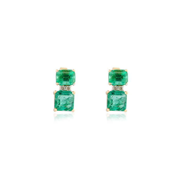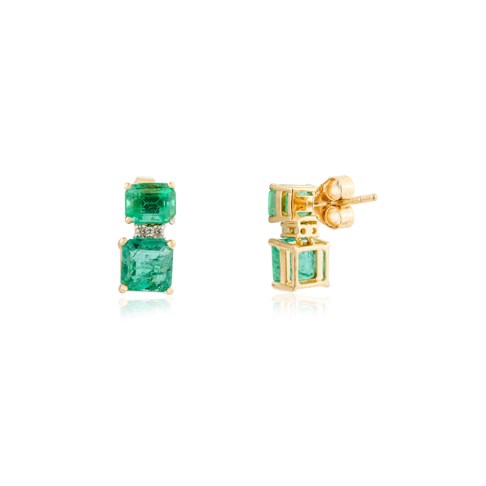 คอลเลกชันใหม่100% ต่างหูเพชรและมรกตแท้สีเหลืองทองสองเม็ดเครื่องประดับในชีวิตประจำวัน