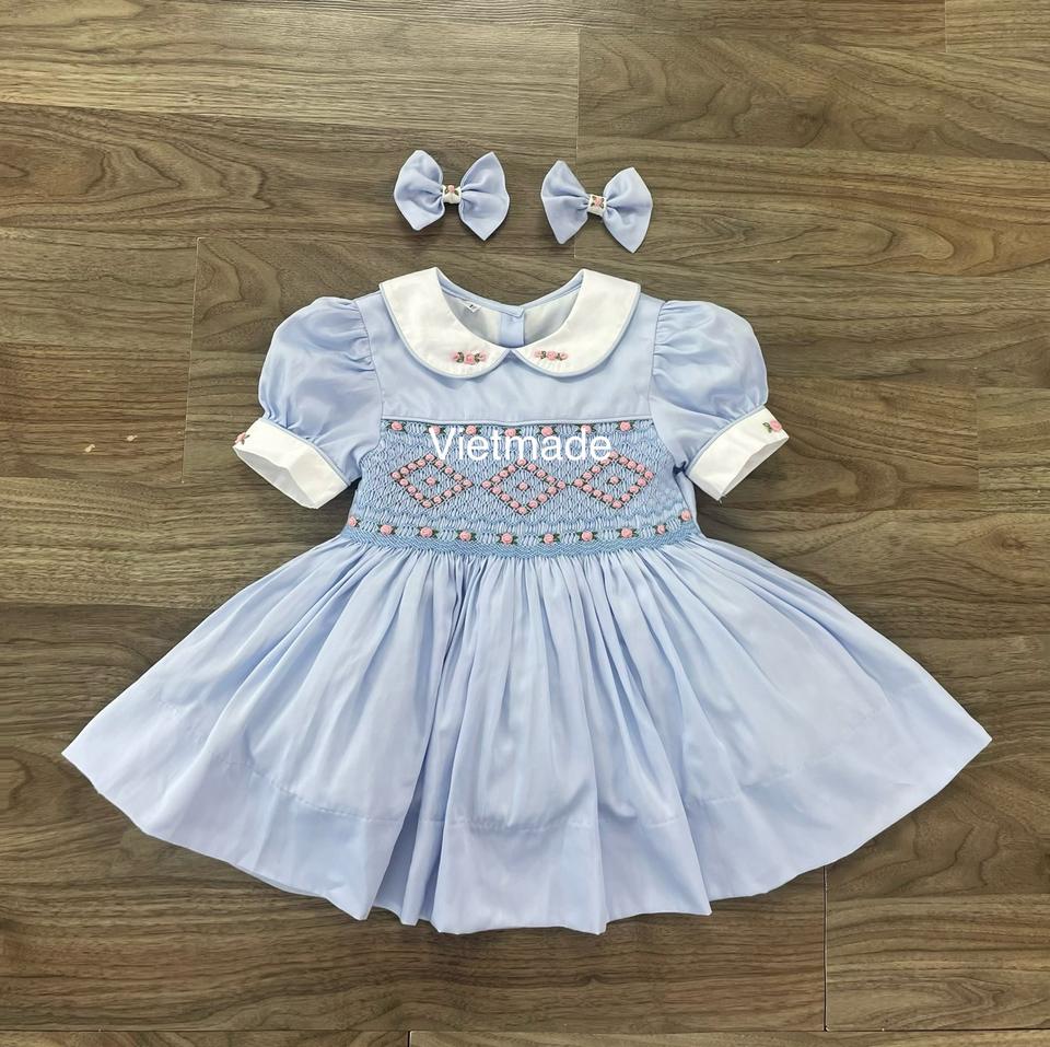 ชุดเดรสแฟชั่นสำหรับเด็กชุดเดรสสีฟ้าคอลเลกชันใหม่ทำมือ