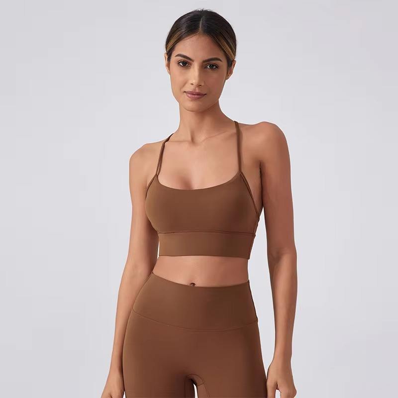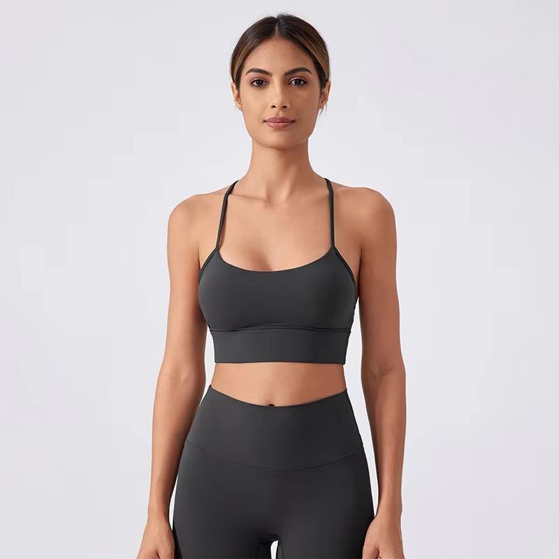 สปอร์ตบราดันทรงสำหรับผู้หญิงบุนวมสองชั้นนุ่มสบายชุดชั้นในกีฬาแห้งเร็วไร้รอยต่อทรงวี