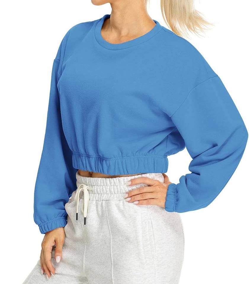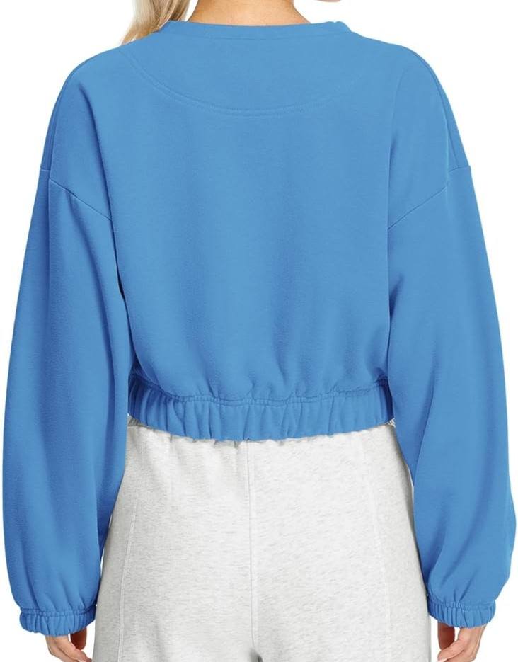 คอลเลกชันใหม่เสื้อสเวตเตอร์ซับในผ้าฟลีซโอเวอร์ไซส์สำหรับผู้หญิงเสื้อสวมหัวคอลูกเรือรุ่นสั้น