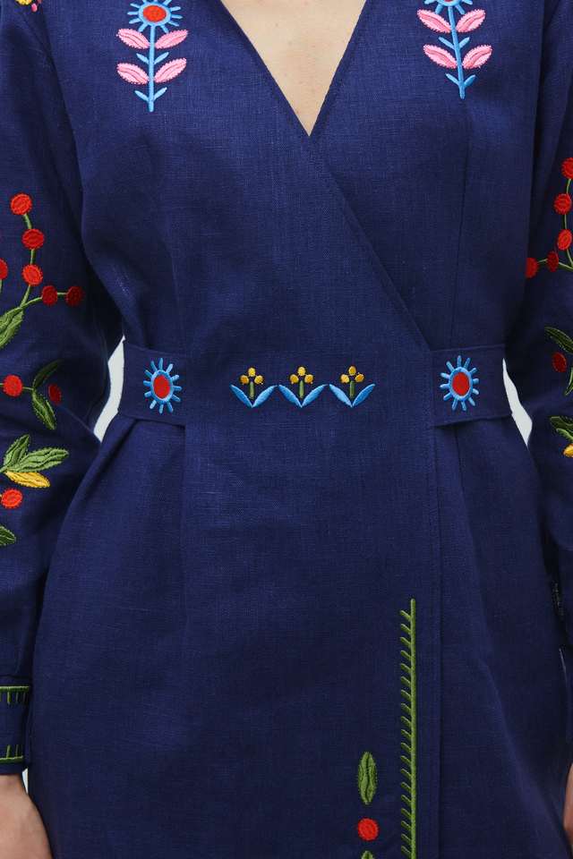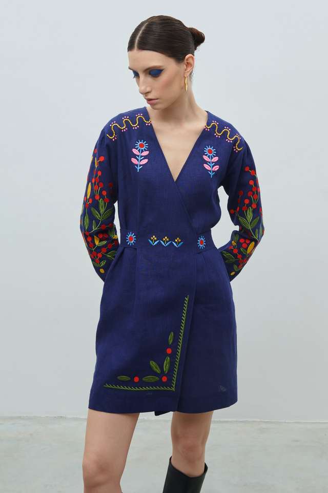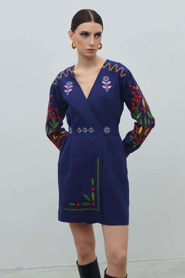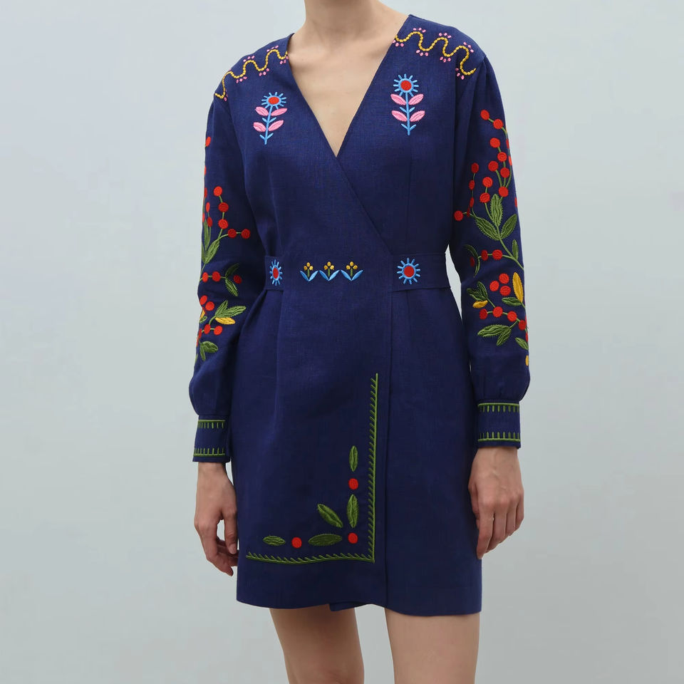 ชุดเดรสปักลายคอลเลกชันใหม่สำหรับผู้หญิงชุดเดรสปักลายยูเครนสีขาวปักคลุมเข่ายูเครน