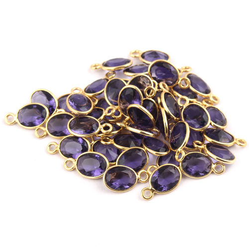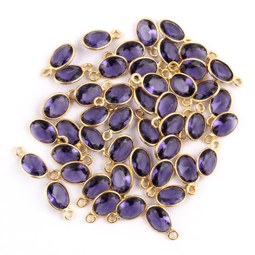 คอลเลกชันใหม่ขั้วต่อการประกันตัวแบบเดี่ยวรูปไข่ควอตซ์สีม่วงเหลี่ยมเพชรพลอยชุบทอง