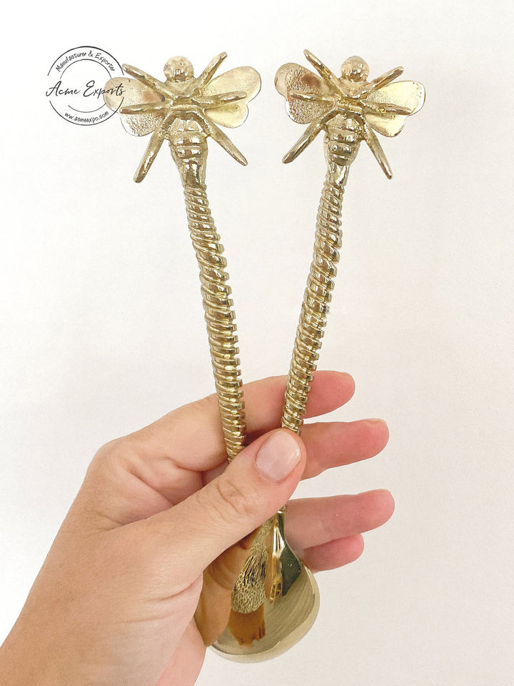 คอลเลกชันใหม่น้ำผึ้งผึ้งทองเหลืองช้อนกระจกขัดที่กำหนดเองการออกแบบที่ทันสมัยขนาดมาตรฐานช้อนโต๊ะ