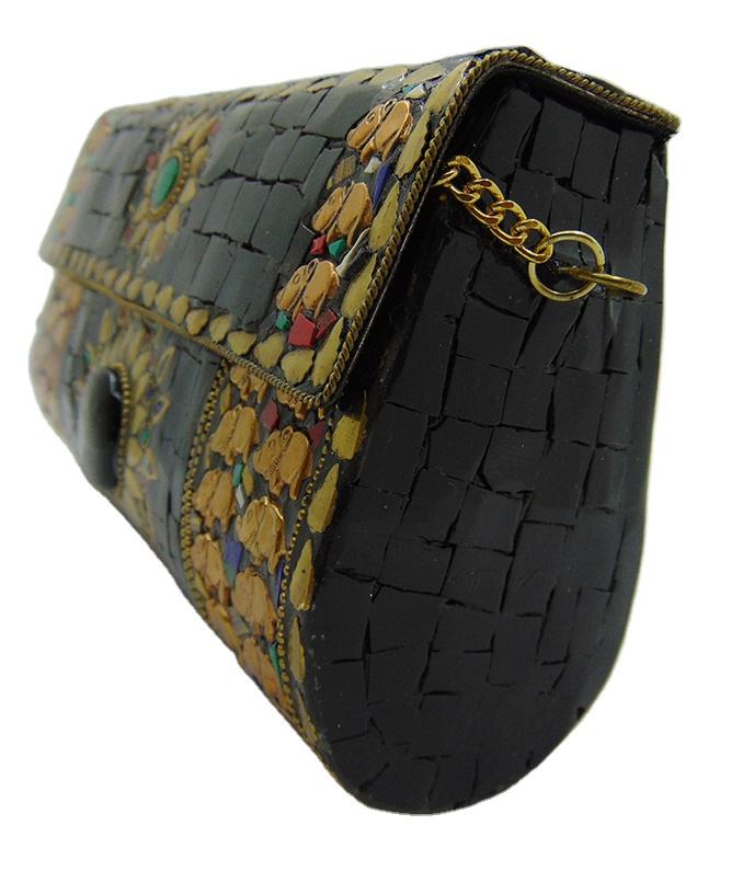 คอลเลกชันใหม่กระเป๋าถือผู้หญิงหรูหรากระเป๋าเงินโมเสกโลหะที่สวยงามมีพนังในรูปแบบหินสีที่แตกต่างกันงานแต่งงานอินเดีย