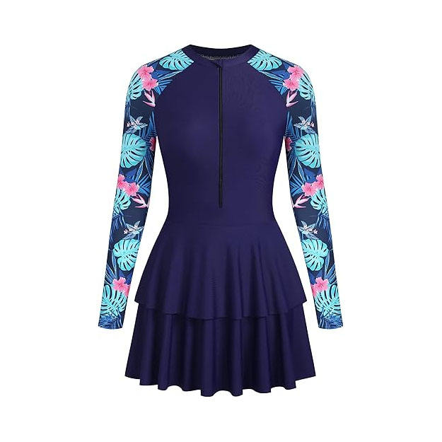ชุดว่ายน้ำมุสลิมแบบใหม่ คอลเลคชั่นใหม่ แขนยาว ชุดกีฬา บุรกินี พิมพ์ลายด้านหน้า ตัดสูง คุณภาพสูง