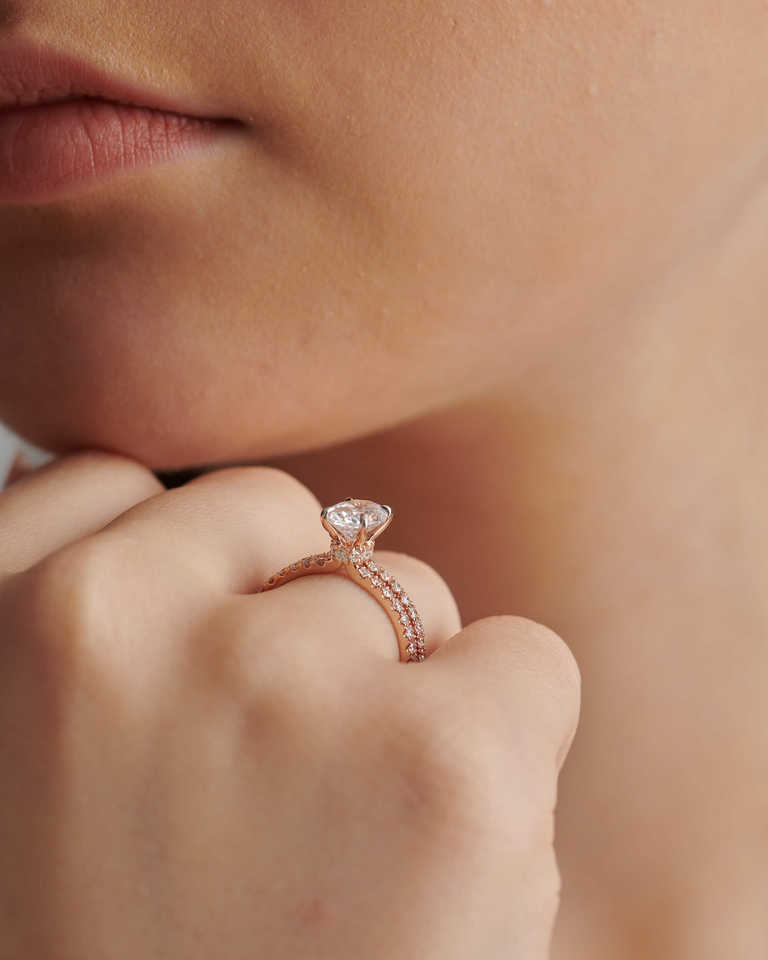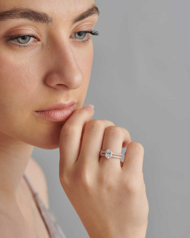 แหวนเพชรแบบก้านคู่ทรงไข่และกลมสวยงามรุ่นใหม่ของขวัญสำหรับผู้หญิงแหวนโซลิแทร์ทรงรี18K สีโรสโกลด์ขายส่ง