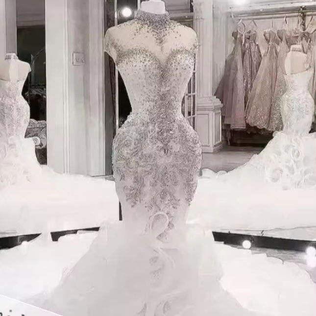 คอลเลคชั่นใหม่ ชุดราตรีทรงบอลกาวน์ไซส์ใหญ่ ยาวกรอมพื้น ดีไซน์ทรงเมอร์เมด คอวีลึก แต่งลูกไม้ ประดับคริสตัล สำหรับงานแต่งงานแบบแอฟริกัน