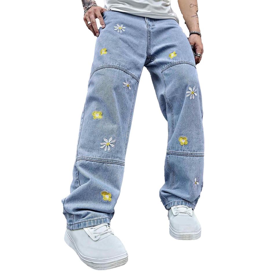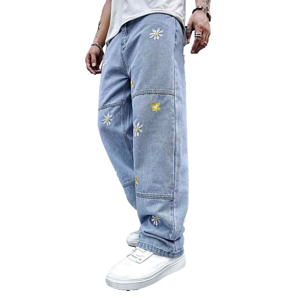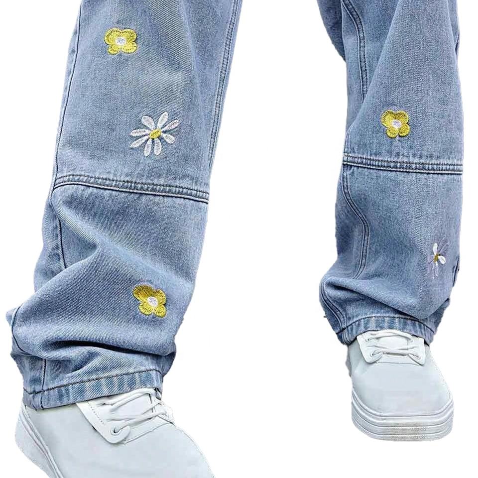 กางเกงยีนส์ทรงหลวมสำหรับบุรุษผ้าคอตตอนสีฟ้าอ่อนปักโลโก้ซักได้ตามต้องการใหม่คอลเลกชันพิเศษ100% ออกแบบได้ตามต้องการ
