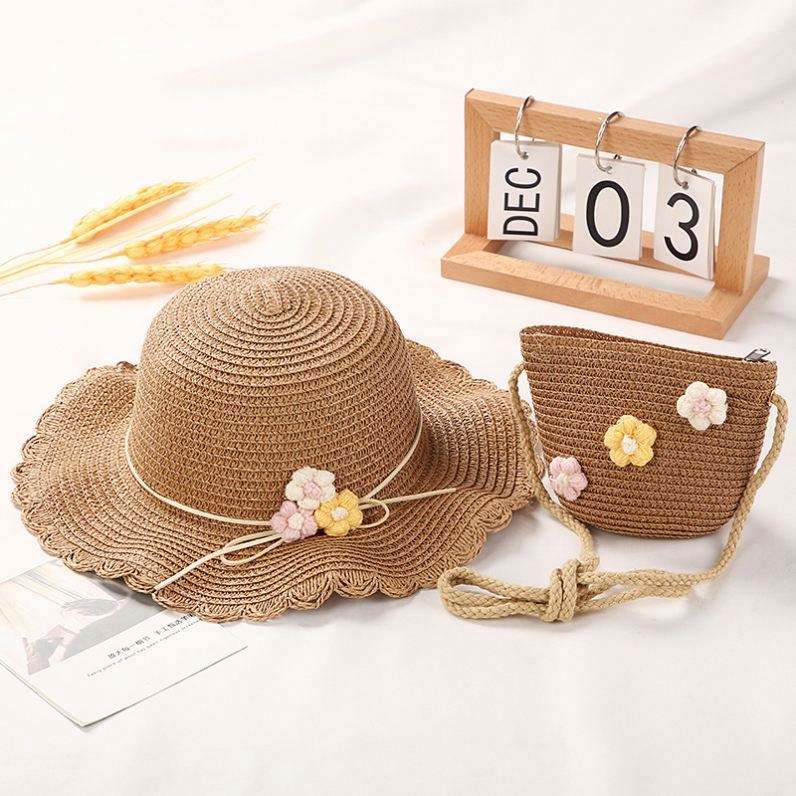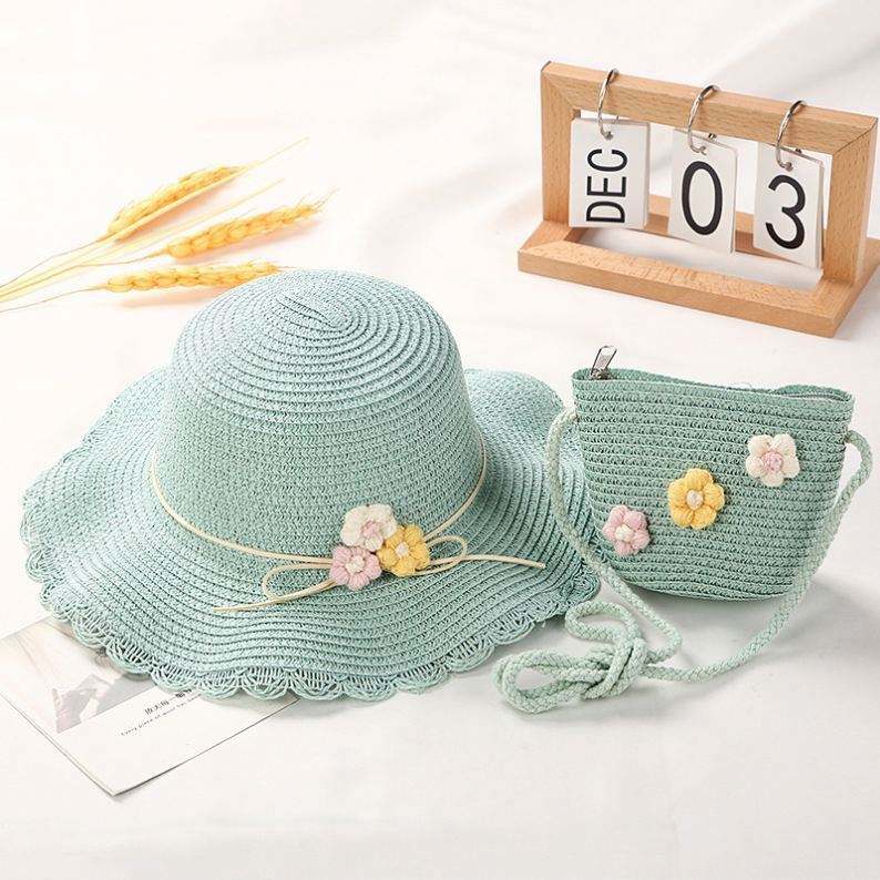 คอลเลคชั่นใหม่ หมวกฟางเด็ก 2023 ชุดหมวกฟางพร้อมกระเป๋า